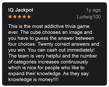 Trivi is a 24/7 variant of Jeopardy. Play every hour as a live contestant in epic multi-player trivia games. Win Bitcoins, cash-out to Dollars. It's free!